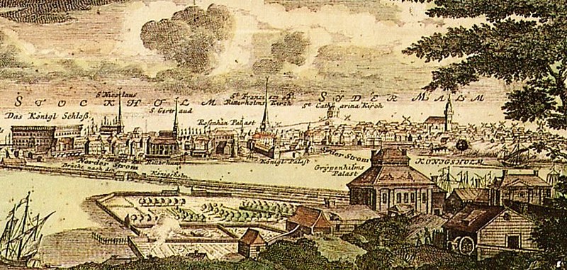 Kungsholmen is an island neighborhood in modern Stockholm. Yet, its roots stretch back to the 1500s, being depicted in the famous “Blodbadsplanschen” (Stockholm Bloodbath) of 1524 and used by the Franciscan monastery for farming, fishing and brick making. Indeed, at the time it was called “Monk’s Camp” (Munkliderna). By 1645, the island got its first bridge and in 1671 a Kungsholmen parish (and church) were established).