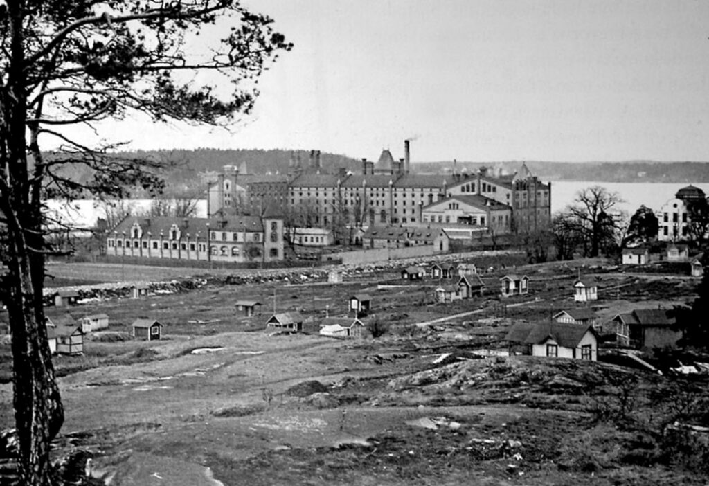 By 1864, Grubben’s had become a location for welfare, offering food, accommodation and work for the poor, unemployed, disabled and sick. Ultimately, the name was changed to “Stockholm City General Supply Facility.” Many of these builds are still visible on site. By the late 1800s a hospital had been established on the site, and in 1922 it was named St. Erik’s Nursing Home, on the site of St. Erik’s Eye Clinic today (2024). However, in the 1990s, most of the area was completed renovated into housing and renamed for the clinic: St. Erik’s, even as the street is called Grubbensringen (Grubben’s Ring) and the area inside the housing is called Grubbens Park.