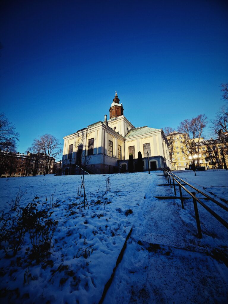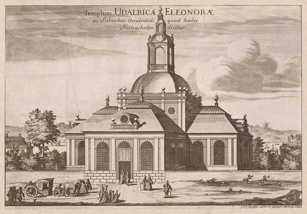 Originally Kungsholmen was mostly used by the “Gray Brothers,” Franciscan monks. However, after the Reformation and with new bridges to the island, a parish and church were established here in 1671. Originally services were held in a small wooden building. But in 1672 work began on the church building you can see today. After Karl XI had donated considerable funds to the building, the foundation was laid on 10 May 1673. As often happens with church building (!) financial complications and disputes, stopped construction in 1676 and was resumed in1685. The church was inaugurated on Sunday 2 December 1688. However, the interior of the church was half finished and the vault was missing.