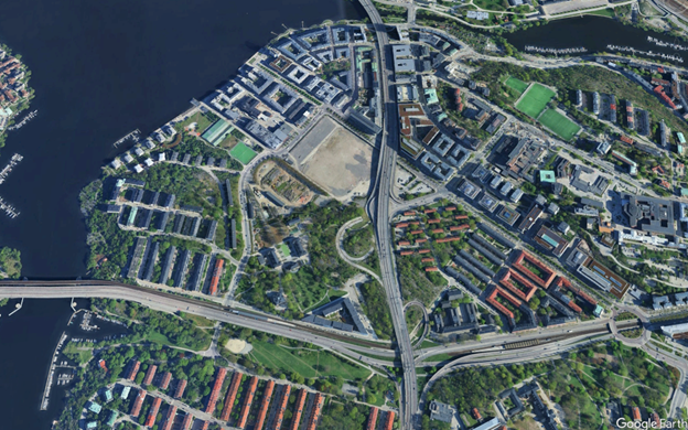 Much of the waterfront here was been reclaimed (i.e. filled in) and in 2024 houses a marina + running path, connecting to Hornsberg Strand & Greater Hornsberg)