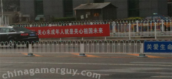 “Taking care of the underaged is taking care of the motherland’s future” (Red banner)