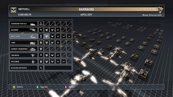 One final way that not only further breaks the rock-paper-scissors review problem but also overall brings the whole thing comes together is the way your army is upgraded. As you play along, you are given credits. Spend the credits on upgrading units according to your play style. Each unit type gets its own unique blend of advantages. For example, helicopters get better attacks and defenses, evening out the advantages the transports enjoy. These upgrades are also faction specific, and can extend the ‘history’ of your faction (e.g. Europeans enjoy electronic warfare in addition to their speedier movement, etc.). The unit upgrades are balanced by individual unit experience levels. That is to say, if the unit in question has not survived enough battles, it cannot use the upgrades. This means commanders become very interested in seeing their people survive, which is not only an addition to ‘history’ fun, but also strongly adds to the ‘organic’ feeling of the game.