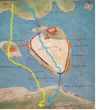 My medieval commute, yellow for Riddarholm, blue for Gamla Stan